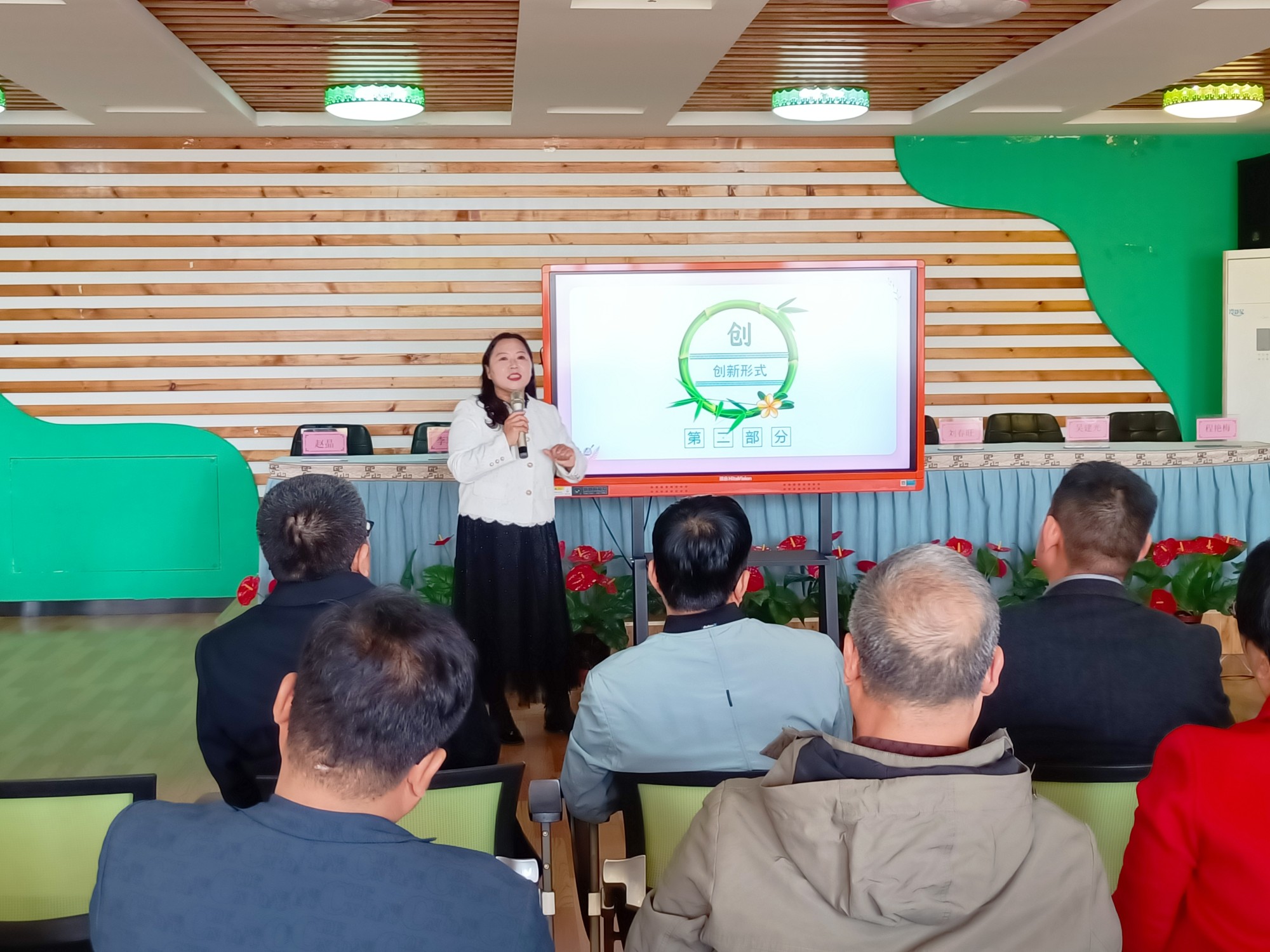 考察分为四个流程。一是展牌介绍。考察团通过北街幼儿园家长学校展牌内容对家长学校历程、活动开展进行了简单的了解。
