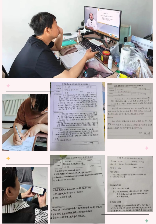 家庭是孩子成长的第一所学校,家庭教育在学校教育中发挥着至关重要的作用。高邑县各幼儿园积极组织家长收看,家园携手,陪伴成长,为孩子一生的发展奠定明亮温暖的底色。家长们认真学习,并撰写听课笔记。