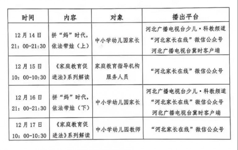 节目播出后将在“河北家长在线”微信公众号提供链接,供回放观看。